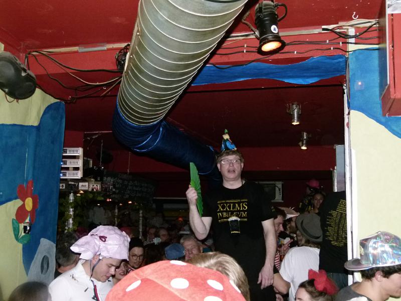 Der Gewinner des Lotta Kranzes verschenkte das Kölsch weiter an ein durstiges Krümelmonster und der Geburtstag eines LMS Vereinsmitgliedes wurde besungen, Victor verspätete sich aber kam dann doch noch zum Gläser einsammeln, und über den Flipp Flopp Jupp wurde viel gelacht.